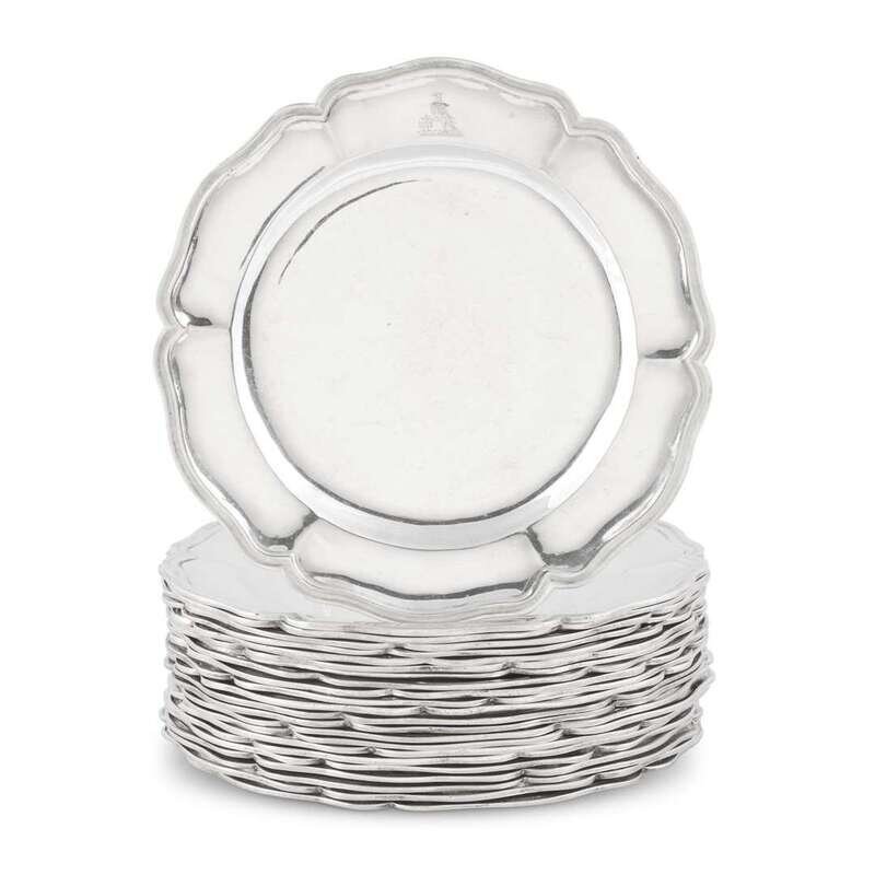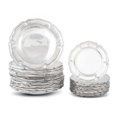 A MEXICAN SILVER ARMORIAL TWO PIECE DINNER SERVICE FOR TWENTY-FOUR apparently unmarked, likely second quarter 20th century