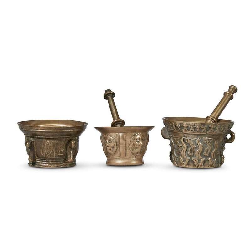 THREE SPANISH CAST BRONZE MORTARS 17th century