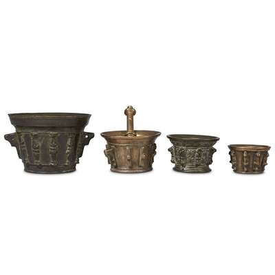 FOUR SPANISH CAST BRONZE MORTARS 17th century