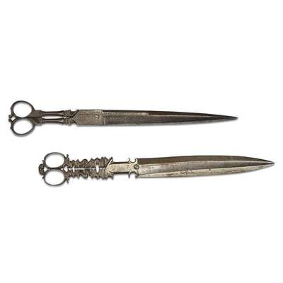 The first in the form of a dagger, the second with finely etched decoration. (2).
