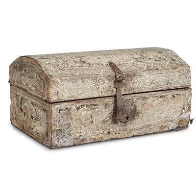 A SPANISH BAROQUE BOX BOUND IN TOOLED VELLUM 18th century