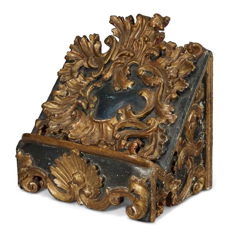A SPANISH ROCOCO GREEN-PAINTED AND PARCEL-GILT BIBLE STAND 18th century
