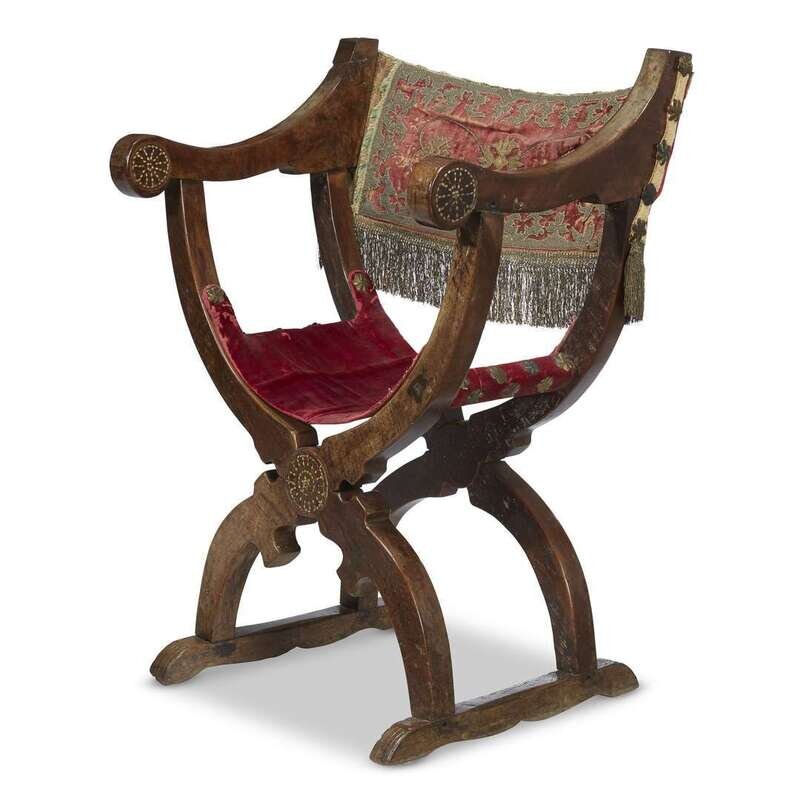 A SPANISH BAROQUE BONE-INLAID WALNUT CURULE ARMCHAIR 17th century