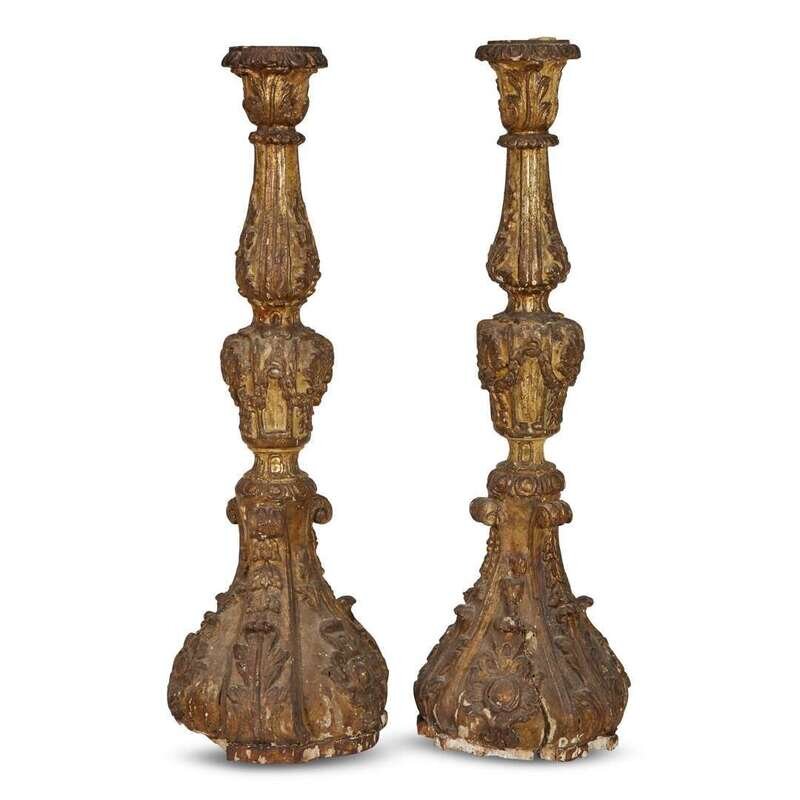 A PAIR OF SPANISH BAROQUE GILTWOOD CANDLESTICKS 18th century
