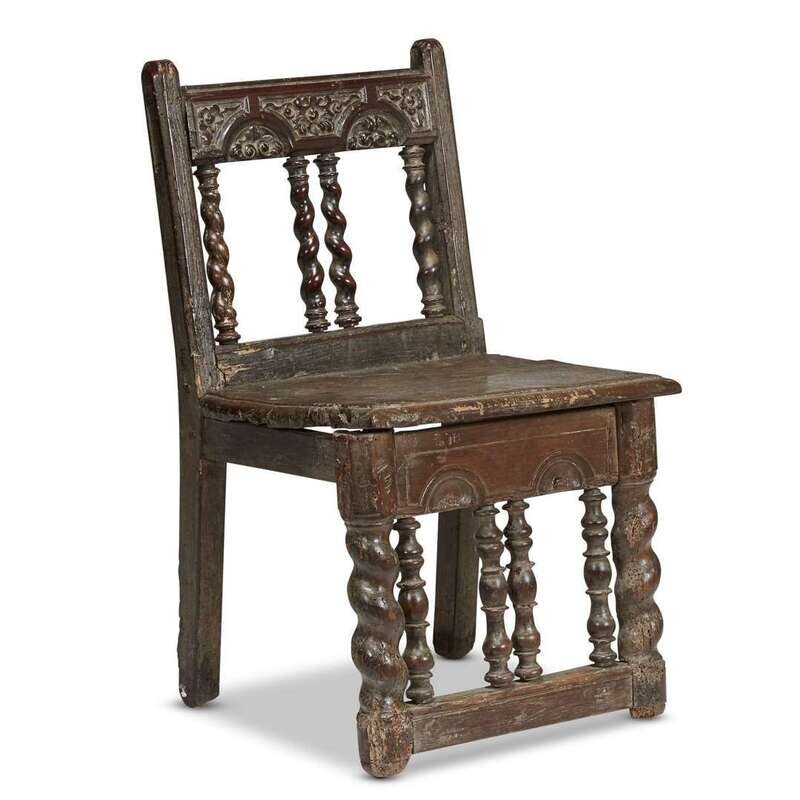A SPANISH CARVED WALNUT CHILD'S CHAIR late 17th century