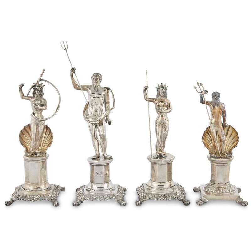 FOUR PORTUGUESE SILVER FIGURAL TOOTHPICK HOLDERS various makers, Porto, mid 19th century