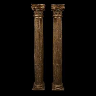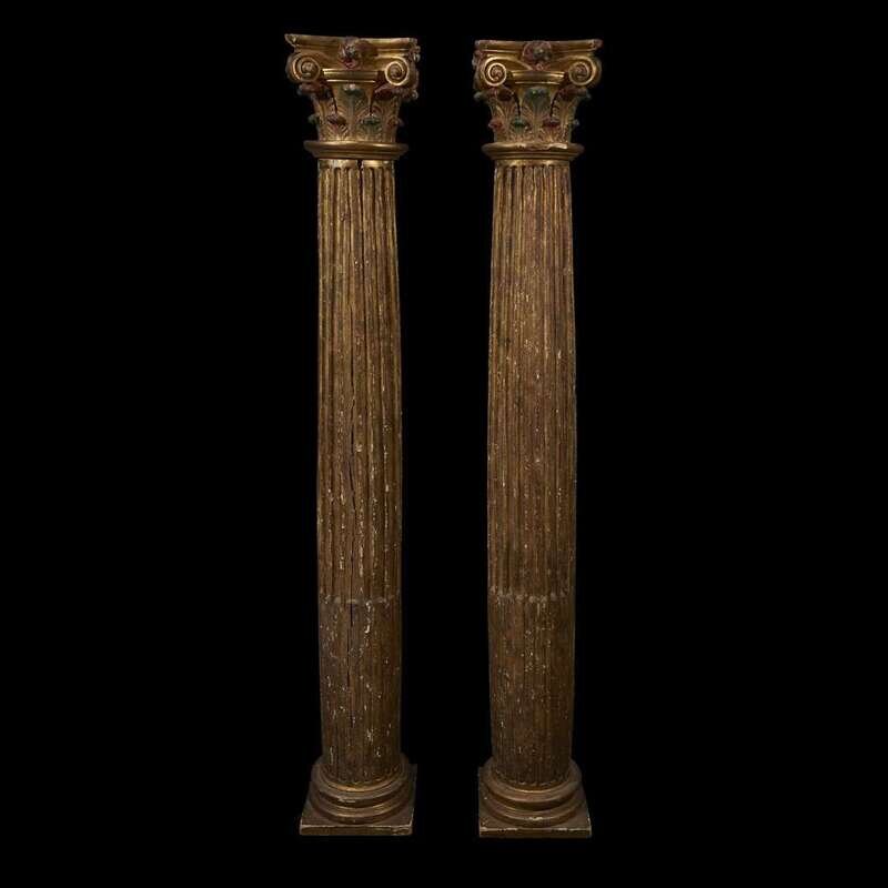 A PAIR OF SPANISH POLYCHROME GILTWOOD CORINTHIAN COLUMNS 19th century