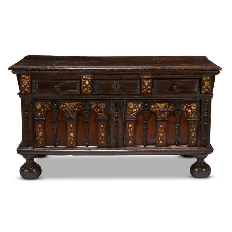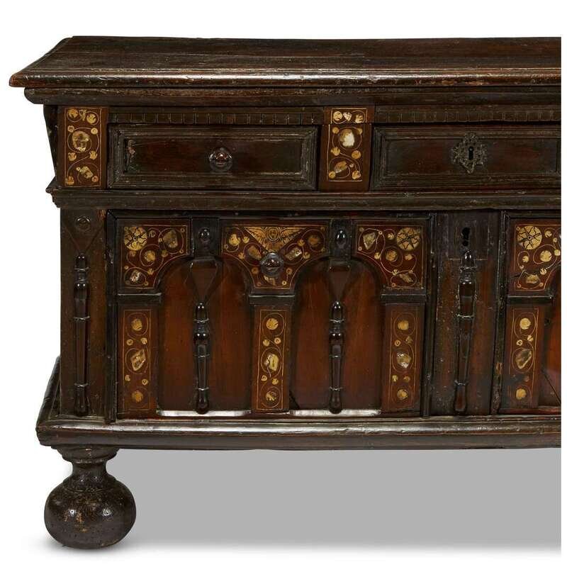 A CHARLES II IVORY AND MOTHER-OF-PEARL INLAID OAK CHEST late 17th century