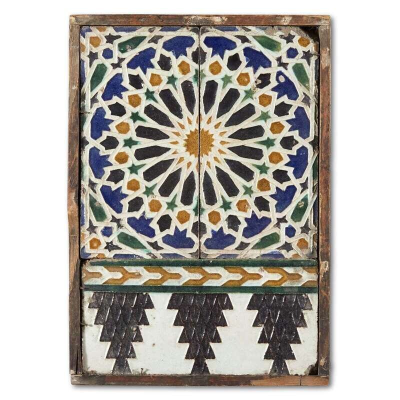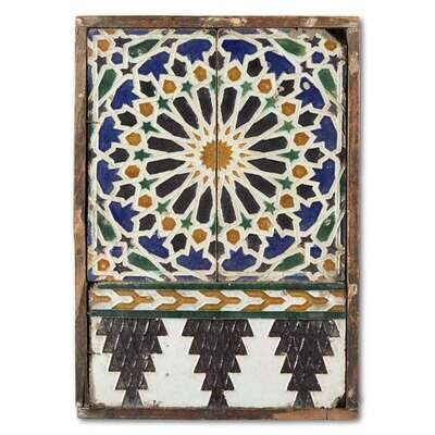 A HISPANO-MORESQUE CUENCA TIN-GLAZED EARTHENWARE TILE PANEL likely Seville or Toledo, 16th century