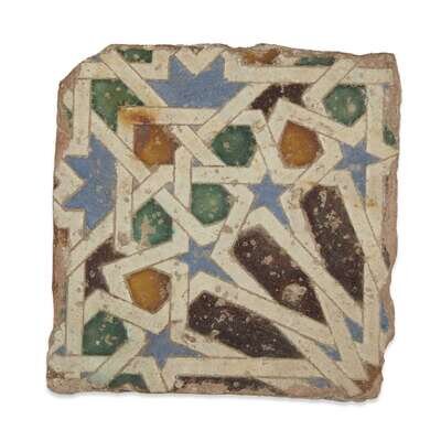 A HISPANO-MORESQUE CUENCA TIN-GLAZED EARTHENWARE TILE likely Seville or Toledo, 16th century