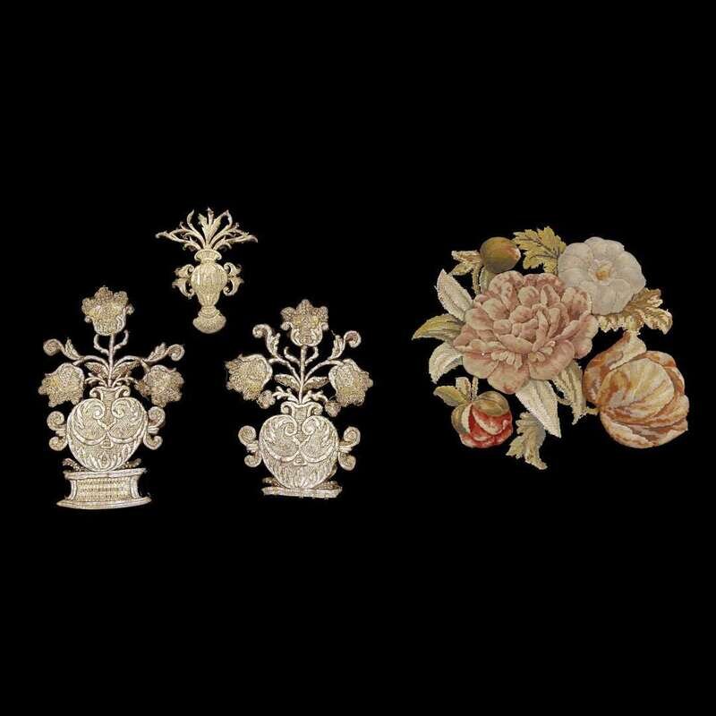 THREE SILVER EMBROIDERED SLIPS 19th century