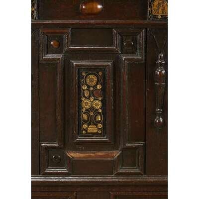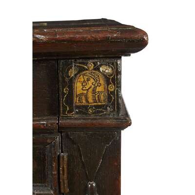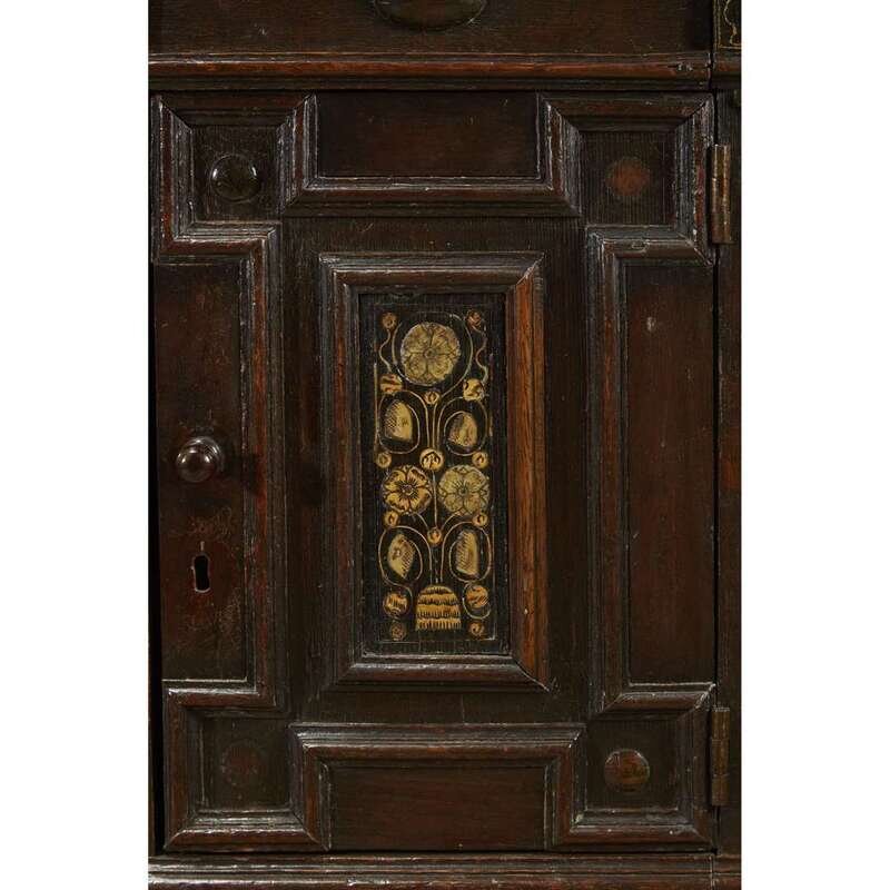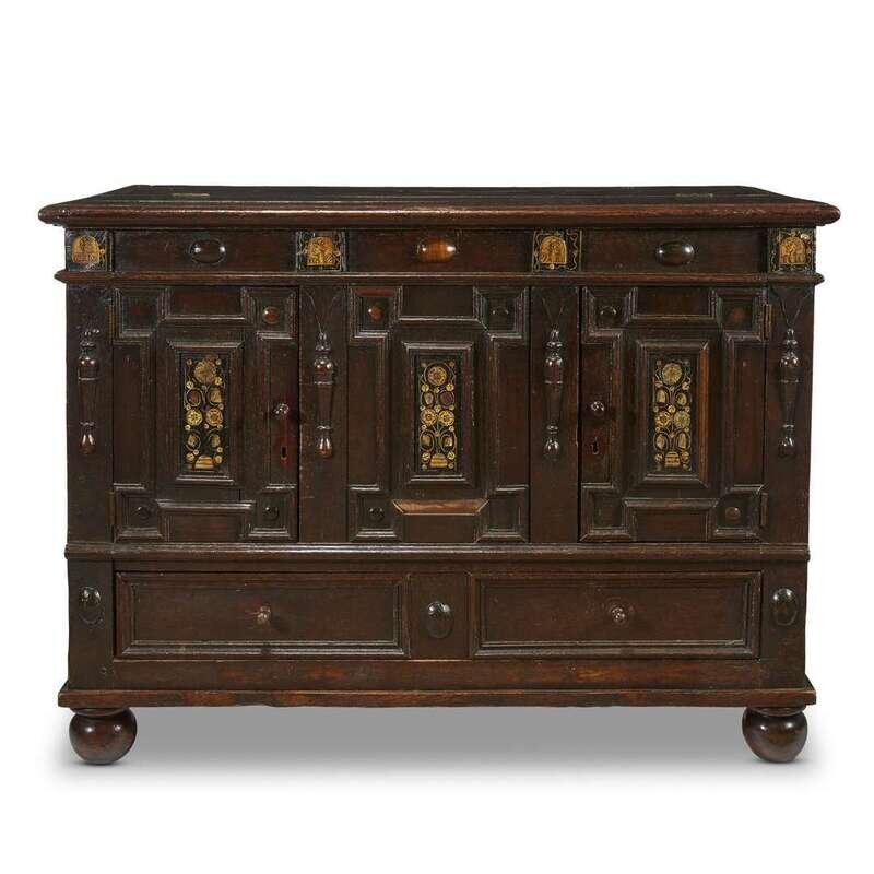 A CHARLES II IVORY INLAID OAK COFFERED CHEST 17th century