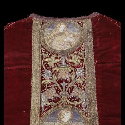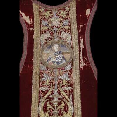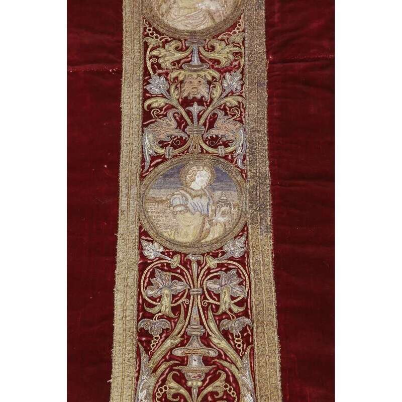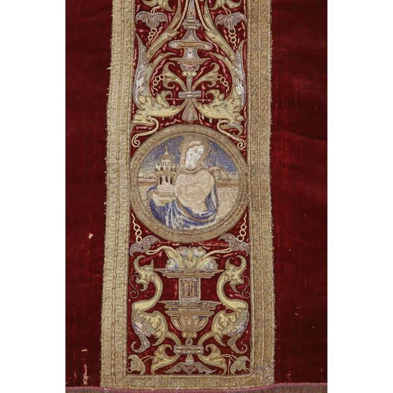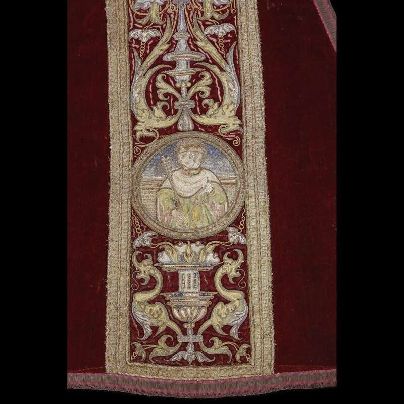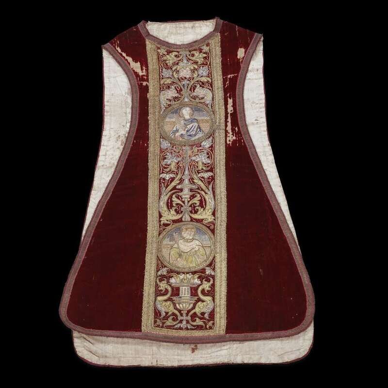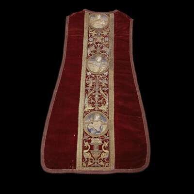 A SPANISH SILK AND GOLD THREAD EMBROIDERED SILK VELVET CHASUBLE 16th/17th century
