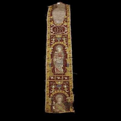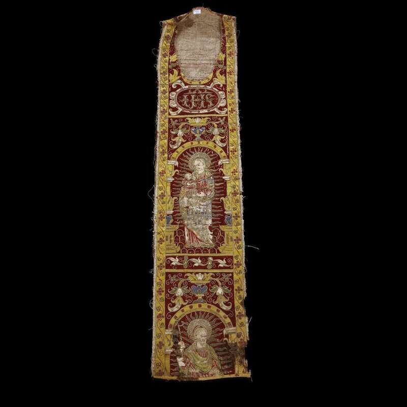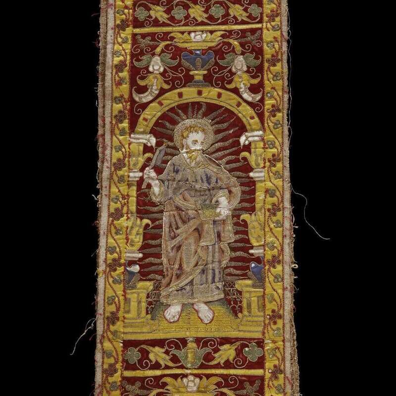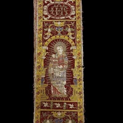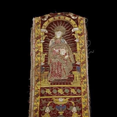 A SPANISH SILK AND SILVER EMBROIDERED ORPHREY 17th/18th century