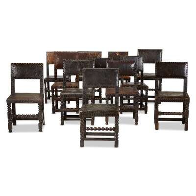 AN ASSEMBLED SET OF TWELVE CROMWELLIAN OAK SIDE CHAIRS 17th century