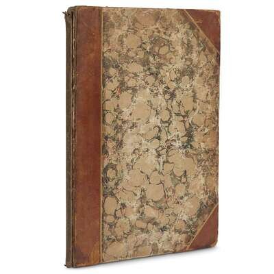 Rome, 1825. First edition. Folio. With the armorial book-plate of British politician John Francis Basset on front paste-down. Basset's ownership signature in ink on verso of front free endpaper. Engraved title-page, 21 (of 30) plates. Plates eight and nine hand-colored, others uncolored. Contemporary three-quarter brown calf and marbled board; ruled in gilt; marbled endpapers. Spine worn away, rubbed, front cover detached but present; engraved title-page and plates foxed. Ex-library with book-plate on front paste-down and call number in pencil on title-page.