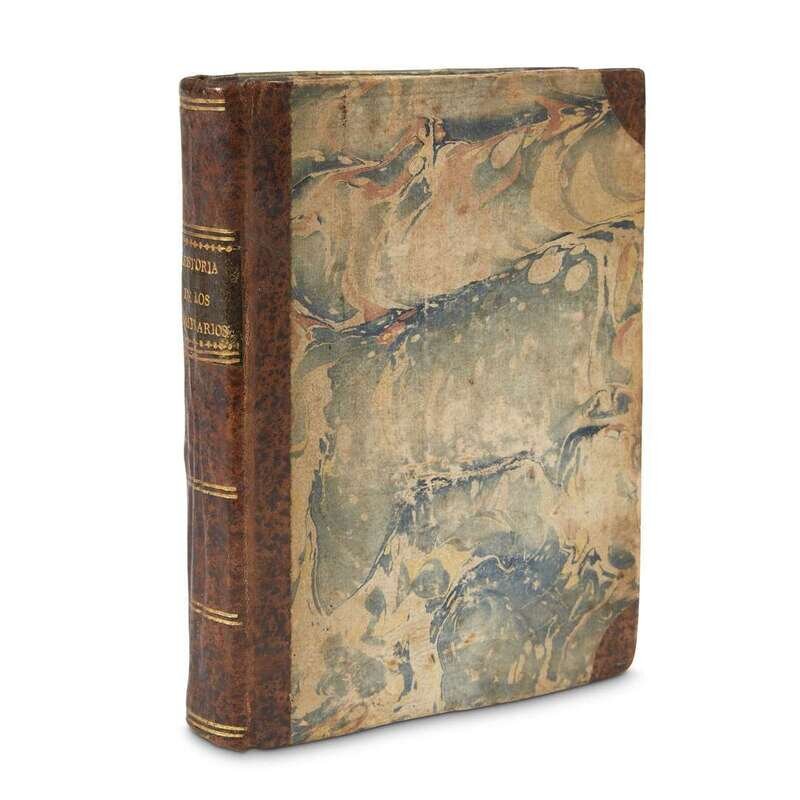 Madrid: Antonio Perez de Soto, 1747. First edition. 4to. [48], 1-286, [1] pp. Title-page printed in red and black. Early 19th century marbled boards with mottled brown calf spine and corners, marbled endpapers, edges trimmed. Lightly worn, edges stained; several quires moderately toned, light foxing to title-page, scattered light foxing to text, minor dampstaining to heads of several last leaves. Ex-library with book-plate on front paste-down and call number in pencil on title-page. Palau 273664. The Templars, a wealthy and powerful Catholic military order, were disbanded in the year 1312. The appearance of Campomanes' history led to the expulsion of the Jesuits from Spain in 1767. The Jesuits were seen as the heirs of the Templars and both were seen as secret societies bent on world domination by all available means.