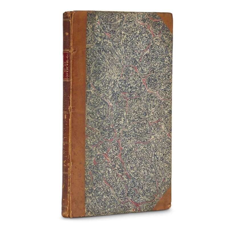 London: for J. Johnson, 1810. First edition. 8vo. With a folding, partly hand-colored, battle plan. Errata included, advertisement leaf at rear. Contemporary or near contemporary half brown calf and marbled boards, spine ruled in gilt, red morocco spine label, marbled endpapers. Spine scuffed, joints rubbed; red regimental stamp at head of title-page, scattered light foxing to text, small separation along one fold of battle plan, some offsetting from map onto the first page, but otherwise clean. Ex-library with book-plate on front paste-down, call number in pencil on front paste-down and title-page.