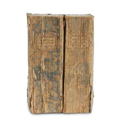 Almanach national de France, an XI de la republique Paris: Testu, [1803]. Thick 8vo. (1)-810pp. Original limp marbled paper wrappers, printed paper spine label, some chipping, small paper faults, creasing and a little dust soiling to largely intact wrappers, a few small chips to paper label, loss of a few letters, some creasing at front and back; old ink annotations at head of front wrapper giving the year of the republic and the year 1802-1803, with a few small damp stains. Ex-library with book-plate on verso of front wrapper and call number in pencil on title-page. OCLC (500148943) reports only three copies. Almanach national de France an XII de la republique Paris: Testu, [1804]. Thick 8vo. (1)-808pp. Original limp marbled paper wrappers, printed paper spine label, untrimmed, with some creasing, small paper faults, a few abrasions to largely intact wrappers, and a few small chips to paper label; with an old ink annotation at head of front wrapper, "Almanach national/an XII," some creasing at front and back. Ex-library with book-plate on verso of front wrapper and call number in pencil on title-page. OCLC (80376428) reports only one copy.
