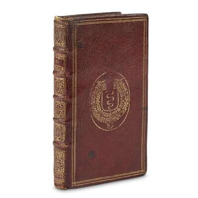 Paris: Jacques Talon, 1669. First edition. 12mo. (i-viii), 1-232 pp., plus a terminal blank leaf. Contemporary gilt-paneled burgundy morocco; richly gilt spine compartments; all edges gilt; gilt coat of arms of a crowned serpent at center of front and back covers; marbled endpapers. Lightly worn; ownership signature in ink on title-page, internally clean.