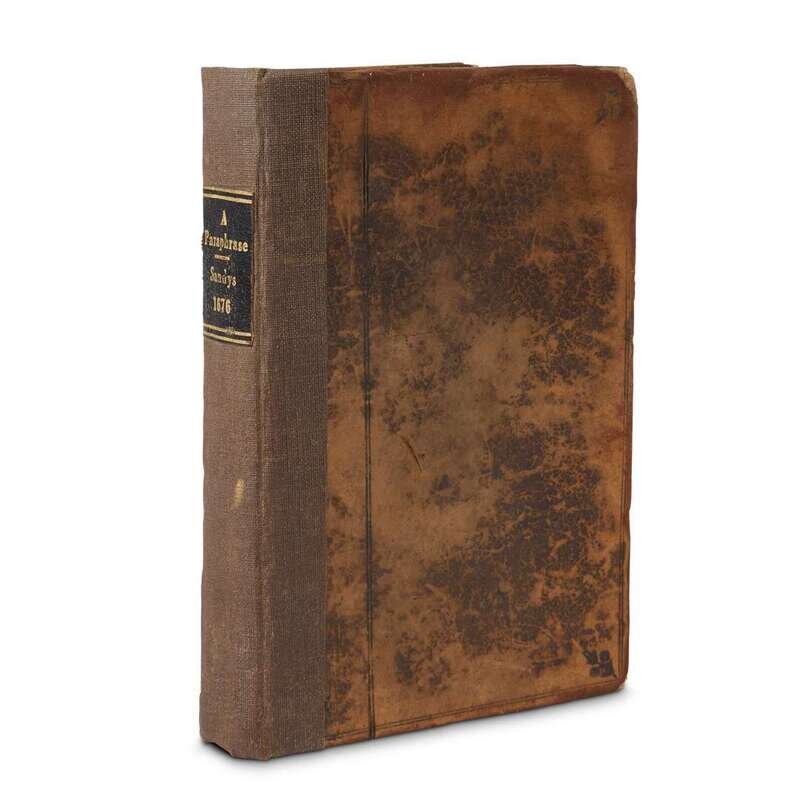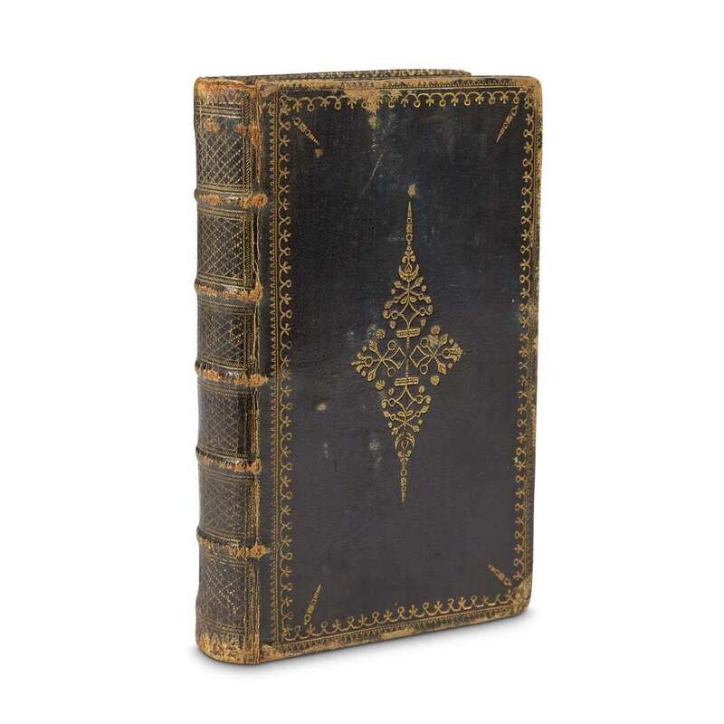 A Paraphrase upon Divine Poems London: J.M. for Abel Roper, 1676. 8vo. (24), 1-79, (16), 1-240, 1-87, [1] p. Contemporary calf; rebacked in modern cloth. Boards heavily rubbed; old ink annotations on terminal blank, an early ink ownership on title-page, hinges crudely repaired, one signature sprung, moderate foxing at front and back, other scattered light foxing to text. Ex-library with book-plate on front paste-down and call number in pencil on the same as well as the title-page. Wing B-2380D; ESTC R11888. Baskerville, John (printer) The Book of Common Prayer... Cambridge, 1762. 12mo. First Baskerville 12mo edition. With cancel title-page bearing, "Price Five Shillings, unbound." Full contemporary decoratively gilt black calf; all edges gilt; inner dentelles gilt; marbled endpapers. Hinges and edges rubbed; scattered light foxing to text. Bound with: Sternhold, Thomas, John Hopkins, and others The Whole Book of Psalms, Collected into English Meter Birmingham: John Baskerville, 1762. Light foxing to text. Ex-library with stamp on verso of front free endpaper and call number in pencil on title-page. Gaskell 20 and 21.