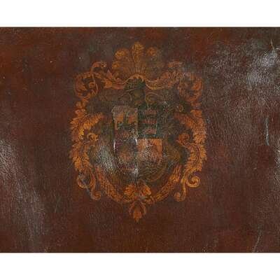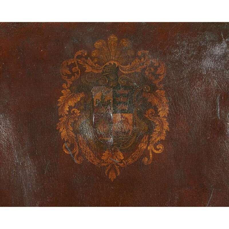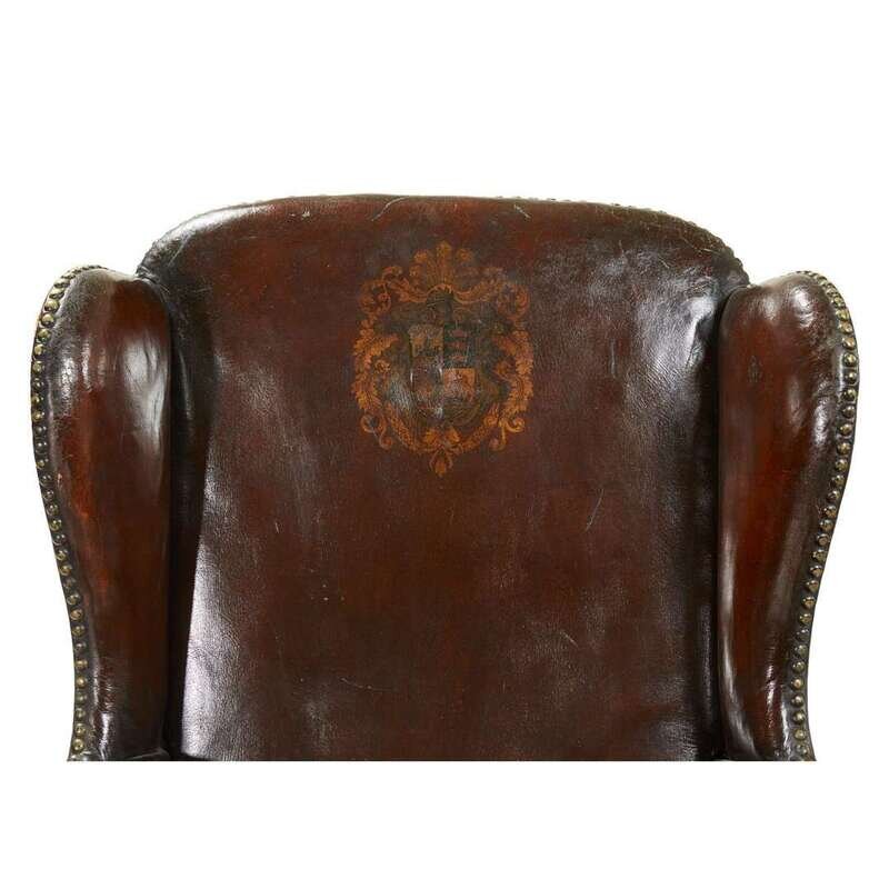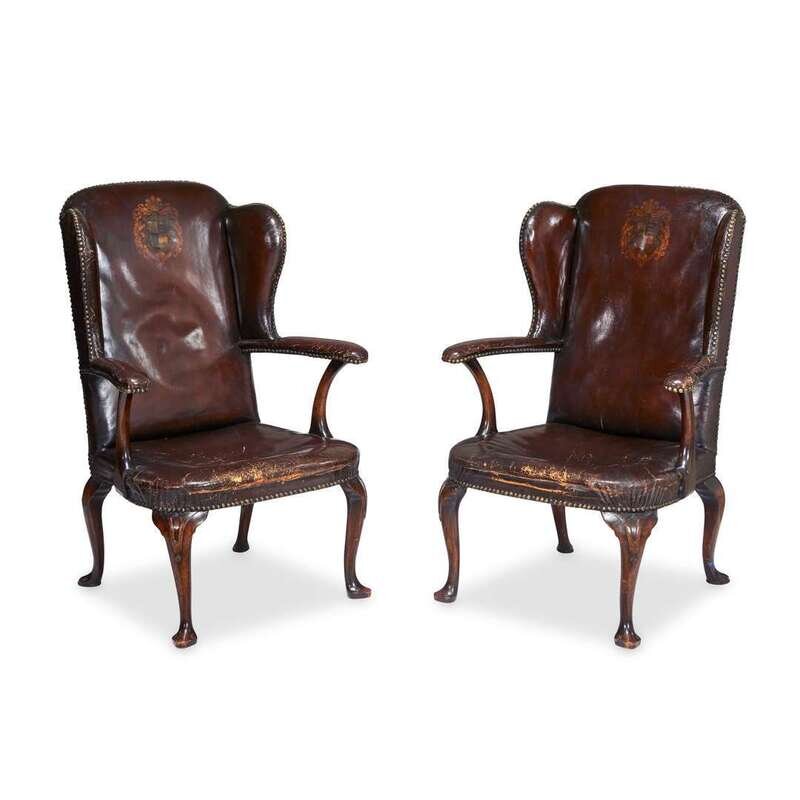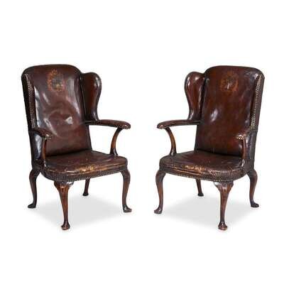With leather upholstery, the backrests each painted with polychromed arms of the Atheneum Club. (2).