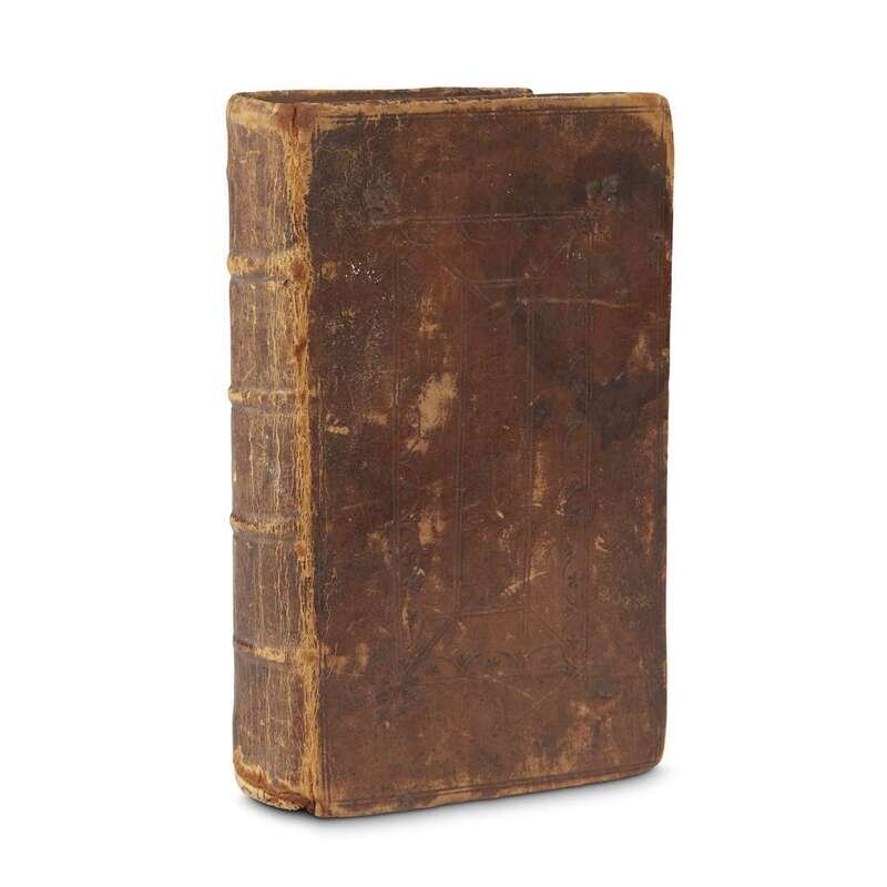 [London], 1711. 12mo. With eight engraved plates. Separate title-pages for A Full and True Account of the Battel...Between the Antient and the Modern Books...and for A Discourse Concerning Mechanical Operation of the Spirit, but with continuous pagination and signatures. With advertisement for "Treaties writ by the same author," at front. Contemporary blind paneled calf. Covers often scuffed, extremities rubbed; scattered light foxing to text, most pronounced at front and back, occasional toning to same, bottom blank margin of leaf M2 torn away. Bound with: [Curll, Edmund] A Complete Key to the Tale of a Tub London, 1714. "The Third Edition." 12mo. [2], 5-310, [2] pp., leaves M2 and N12 blank; (1)-36 pp. Scattered light to moderate spotting; early 19th century ownership signatures in ink on front and rear endpapers and blank recto of advertisment leaf at front, occasional foxing to text, darkening to edges at rear. Ex-library with ink stamp on front paste-down, and call number in pencil on front paste-down and first title-page. Teerink-Scouten 227 and 1004; ESTC N49976 and N49977.
