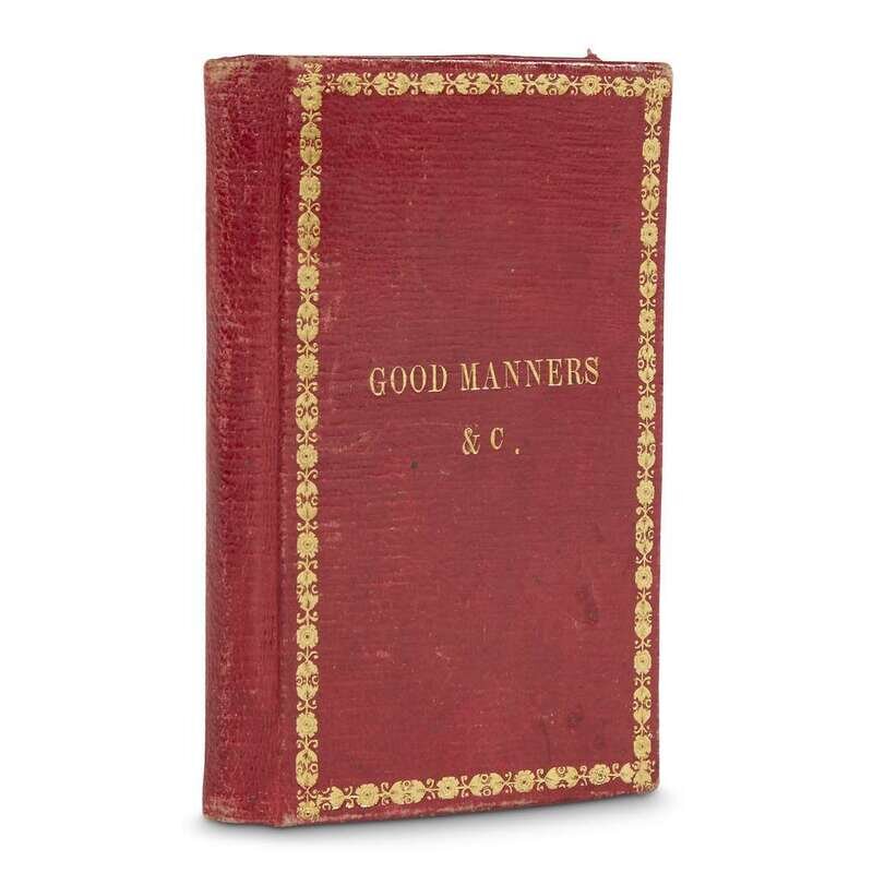 Burlington, N.J., 1816. 24mo. (1)-24 pp. Later 19th century full gilt scarlet morocco, printed self wrappers. Scuffed; early ownership signature in ink at head of title-page. Bound with: Instructions for Babes; or, Answers in Verse to Spiritual Questions New Haven: John Babcock and Son, and S. and W. R. Babcock, 1821. 24mo. (1)-30 pp. Frontispiece. Old scrawl on title-page, some staining to text, chipping to top corners. Bound with: The Seasonal Supply American Sunday School Union: Philadelphia, [ca. 1825]. 24mo. Original pictorial tan wrappers. (3)-8 pp. With the No. 13 north Fourth street address, advertisement on rear wrapper. Some staining to wrappers, creasing to same; some staining to text. Ex-library with stamp on front paste-down, call number in pencil on front paste-down and title-page of first wrapper. Sold with all faults.
