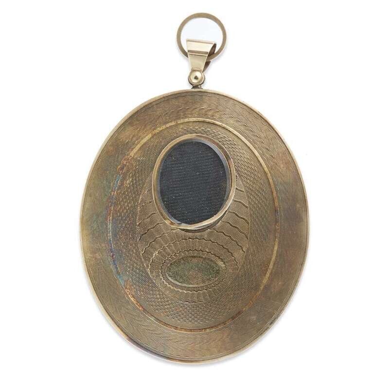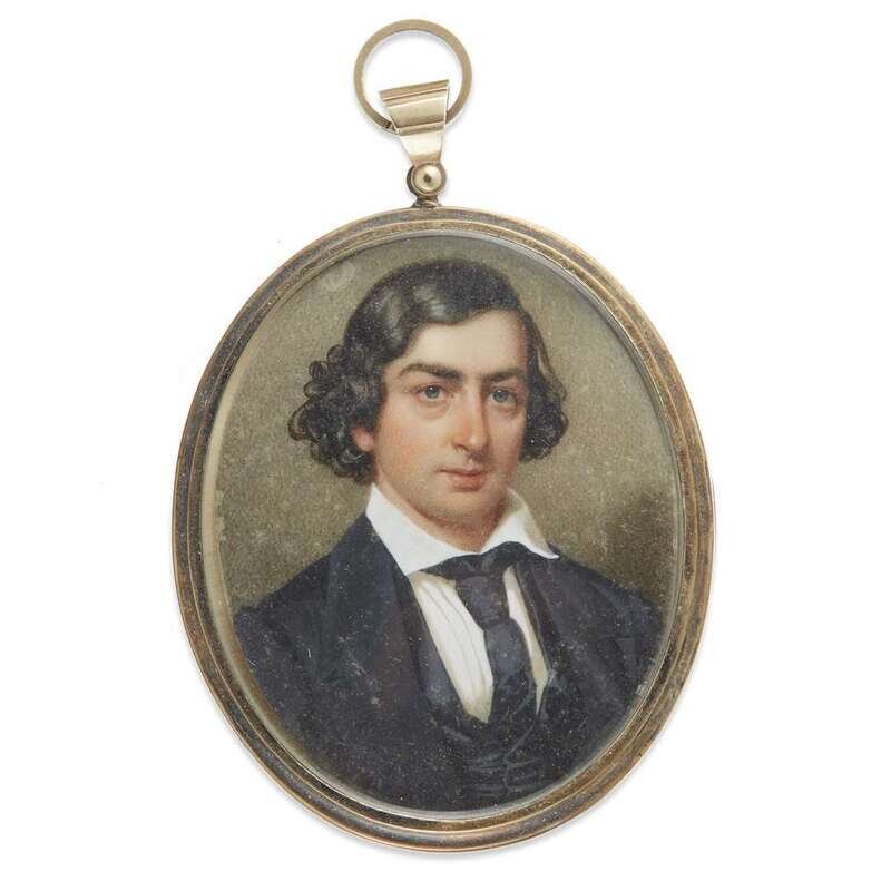 Watercolor on ivory, in original engine-turned gold case, with an empty hair reserve to obverse; the backing paper inscribed, "Painted by/T.H. Stevenson/Cleveland/June 1845."