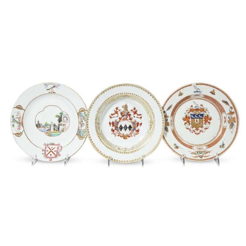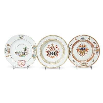 Two Chinese Export porcelain Armorial plates and a soup plate circa 1740