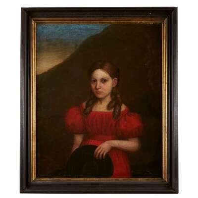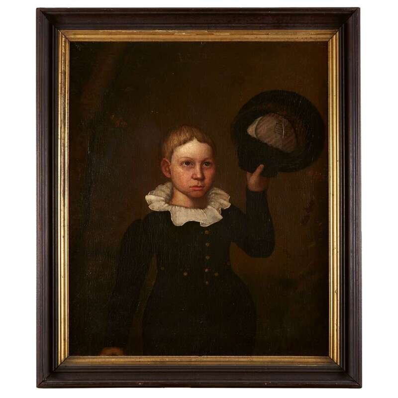 American School 19th century Pair of portraits: young girl and boy holding a hat, circa 1830