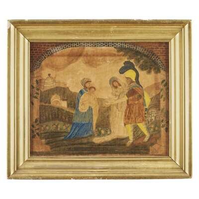 American School 19th century Theorem depicting The Parting of Hector and Andromache