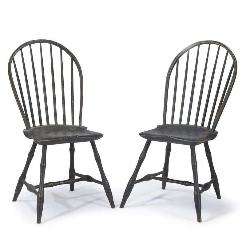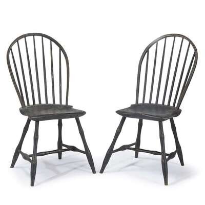Pair of green-painted Windsor hoop-back side chairs late 18th century