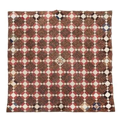 Cotton "Nine patch" pattern quilt First half 19th century