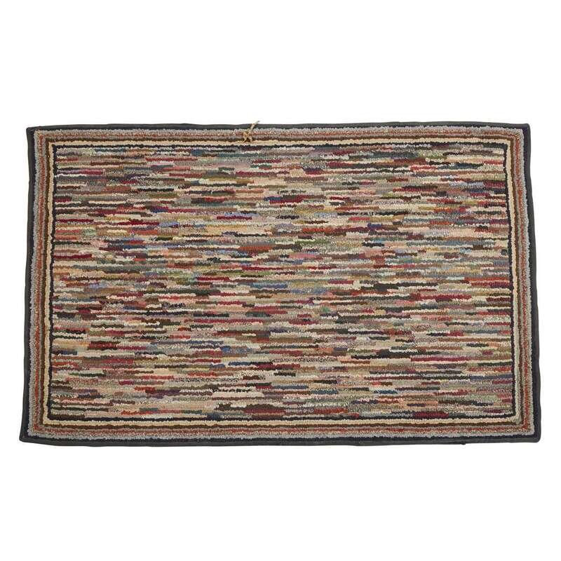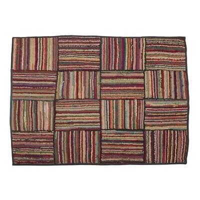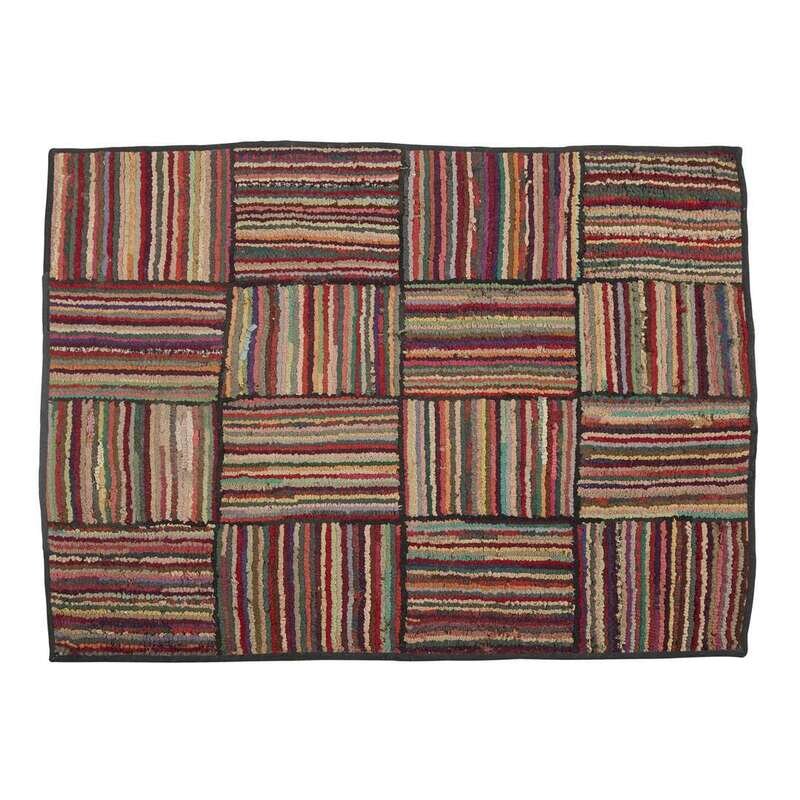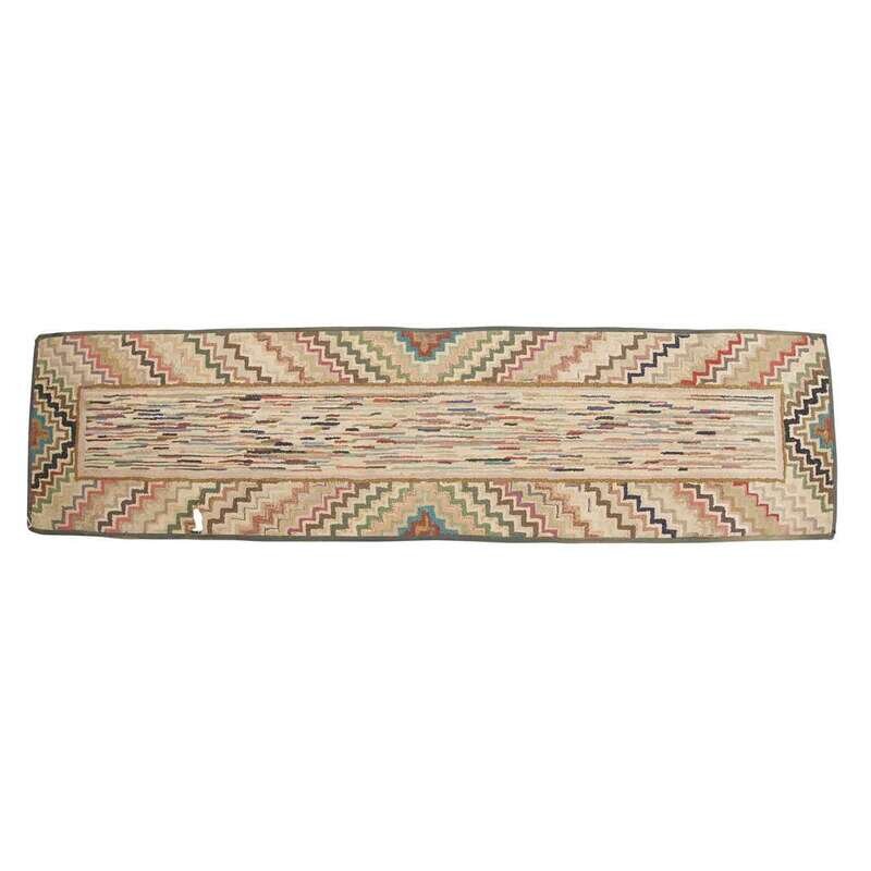 Group of five hooked rugs with multicolored "lines" and rectangles late 19th/early 20th century