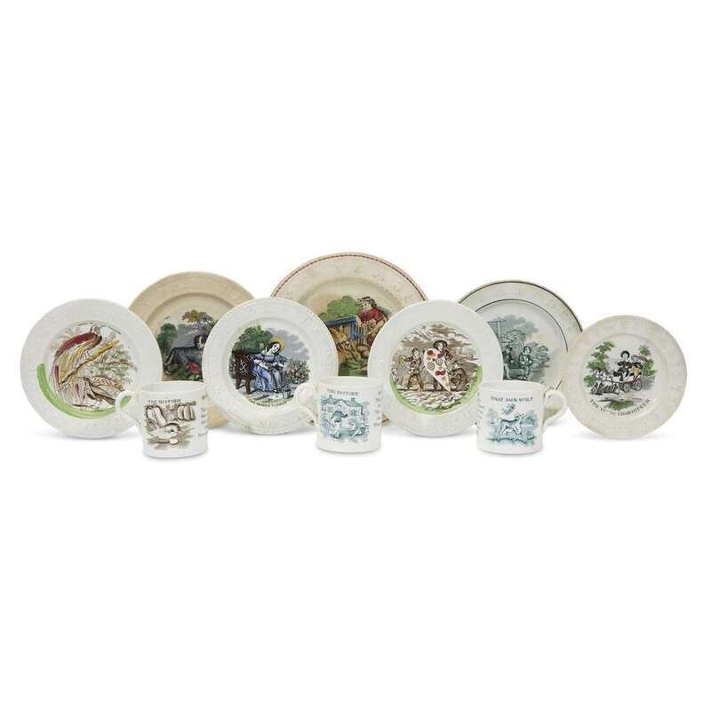 Staffordshire transfer-decorated children's cups and alphabet plates 19th century