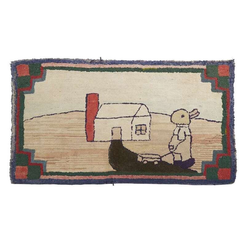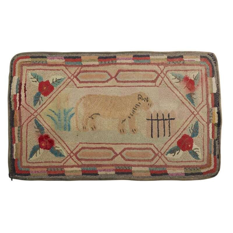 Group of four hooked rugs depicting animals late 19th/early 20th century