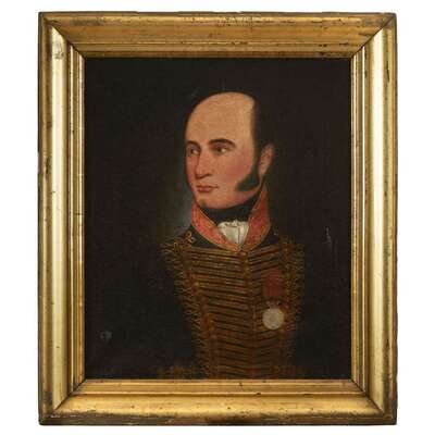 American School 19th century Portrait of a European Officer with Waterloo medal, early 19th