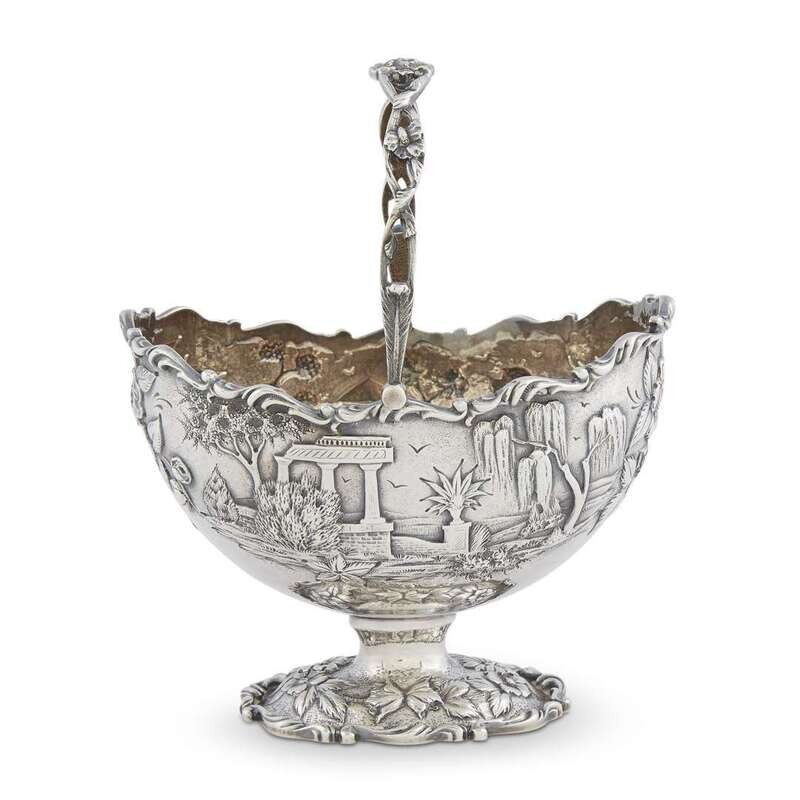 Sterling silver repoussé sugar basket S. Kirk & Son Co., Baltimore, MD, late 19th/early 20th century