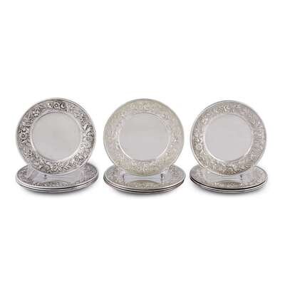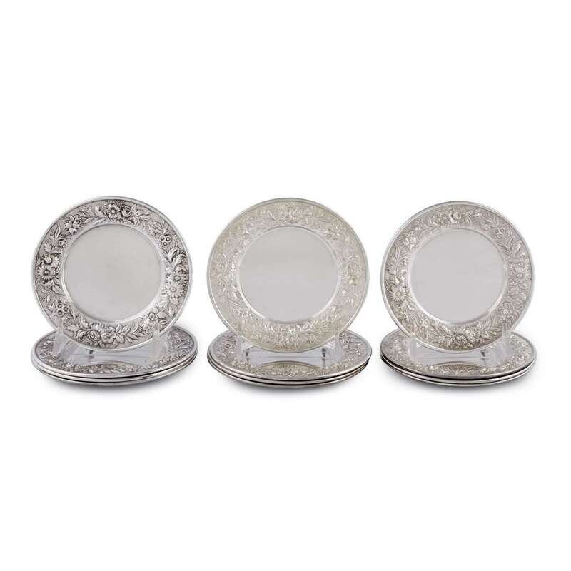 Set of twelve sterling silver floral repoussé bread plates S. Kirk & Son, Baltimore, MD, 20th century