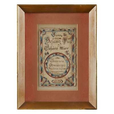 Schwenkfelter Fraktur: Bookplate for Benjamin Rosenberg 1823