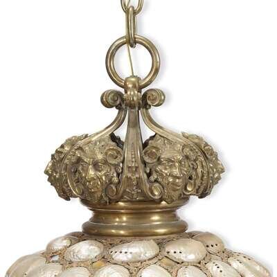 Capiz shell, glass, cast brass and gilt metal chandelier circa 1900