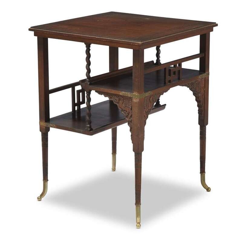 Aesthetic inlaid rosewood multi-tiered table A. & H. Lejambre, Philadelphia, PA, circa 1880