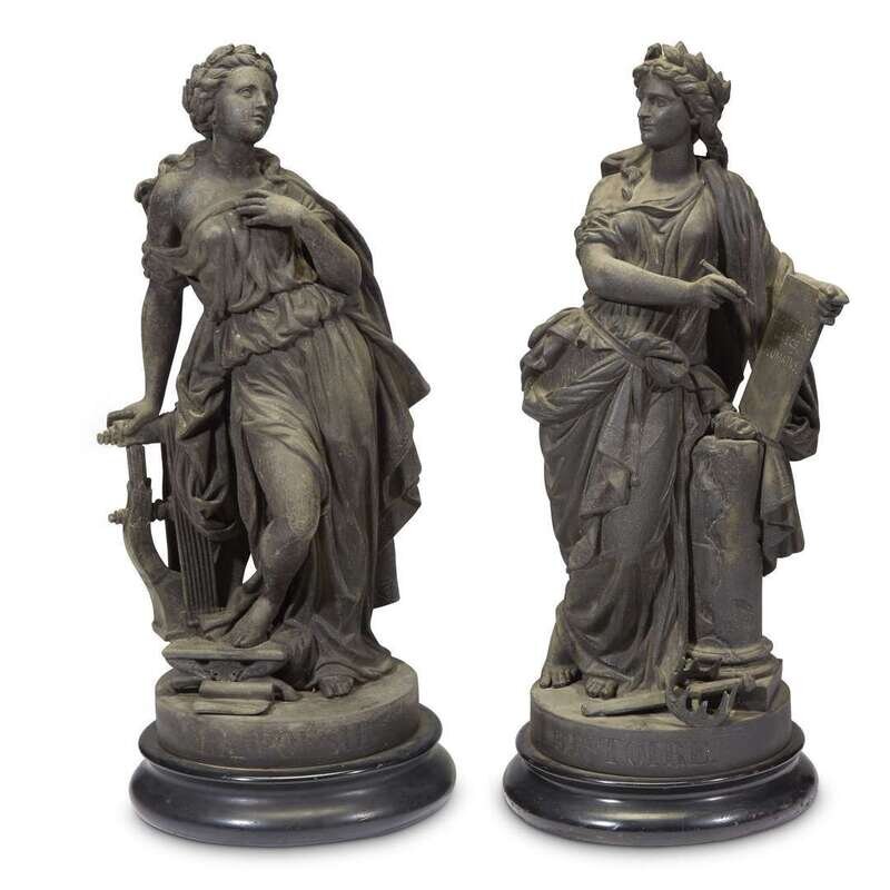 Two French spelter figures depicting L'Histoire and La Poesie late 19th century