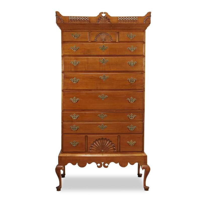 Queen Anne carved maple and cherry chest-on-frame In the manner of the Dunlap Family, New Hampshire, 18th century and l