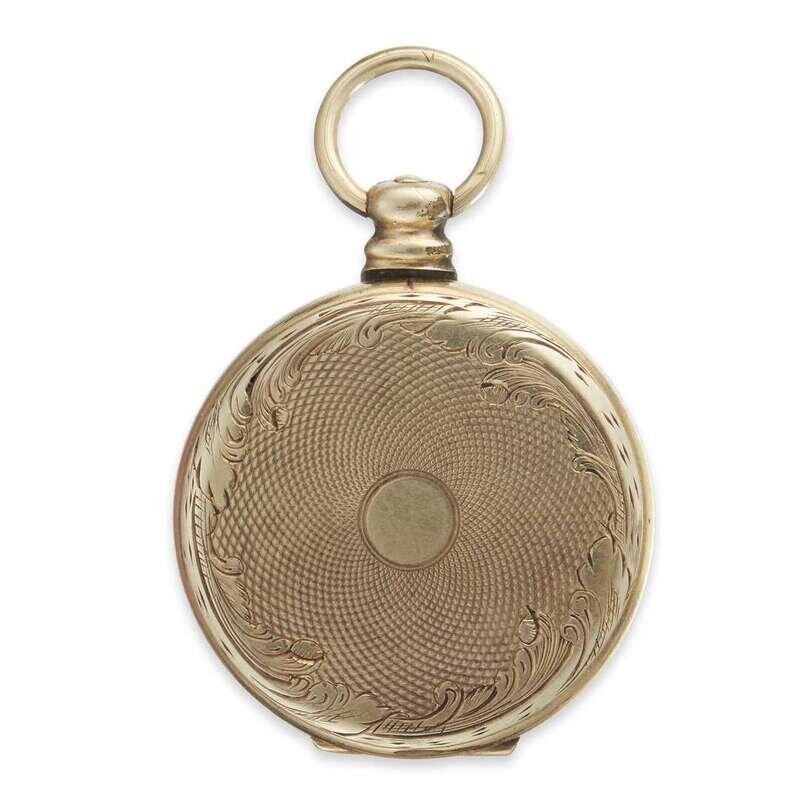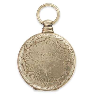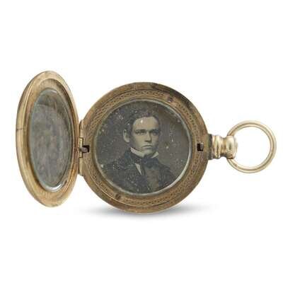 The exterior engraved with rococo motifs and monogram "RDK", the interior with woven palette work and dagguereotype portrait of a young man.
