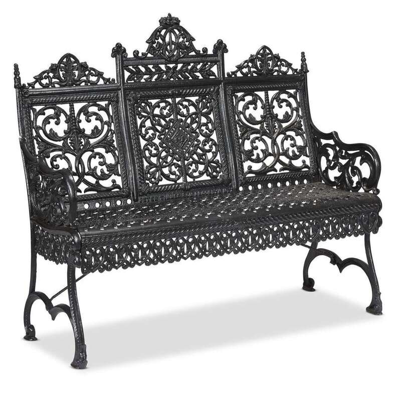 Gothic Revival black-painted cast iron garden bench circa 1880