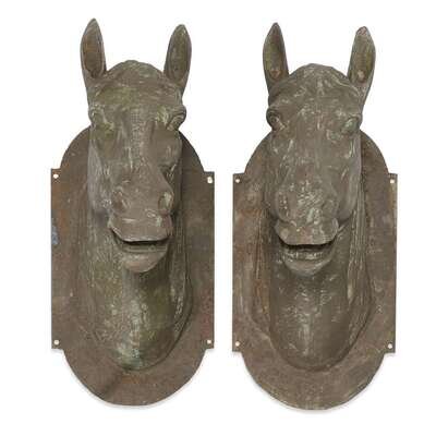 Pair of cast iron horse heads 20th century