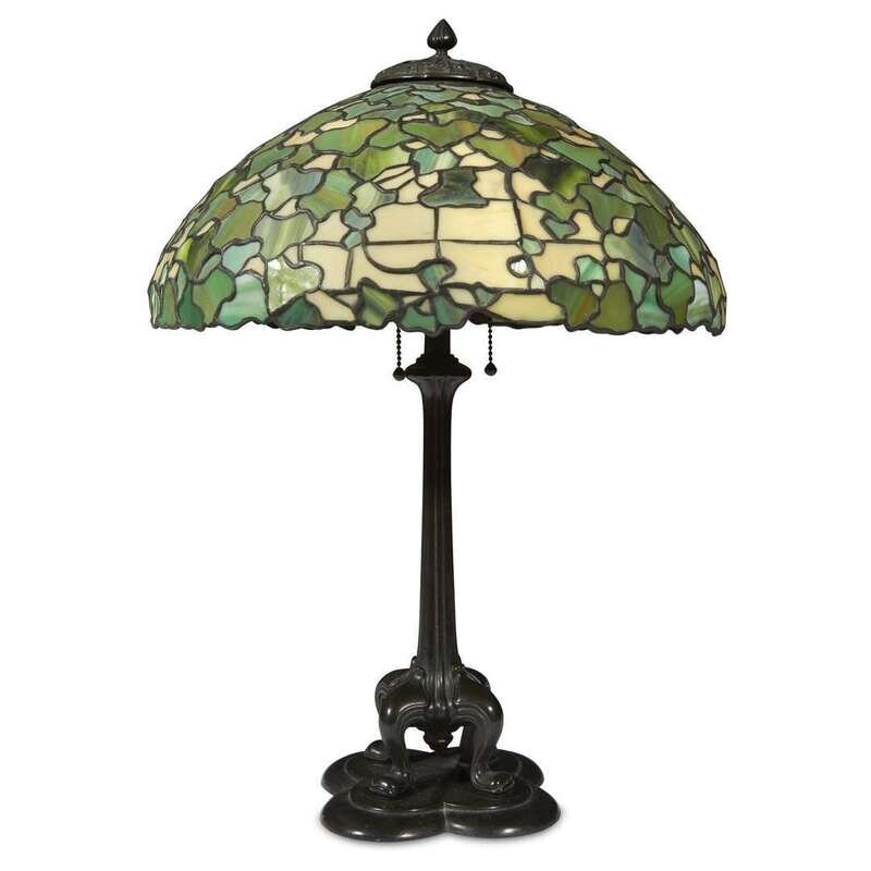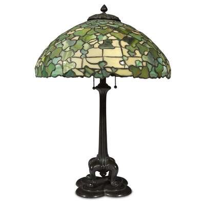 Leaded green glass and bronze "Ivy" table lamp Duffner & Kimberly Co., New York, NY, circa 1906-1911