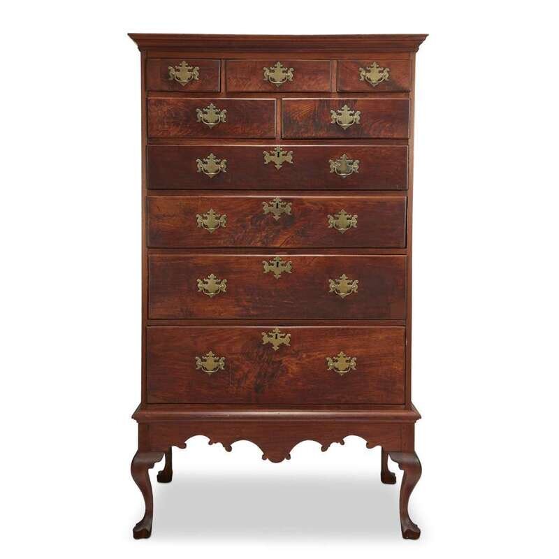 Queen Anne figured walnut chest-on-frame Signed "William Chandler", Pennsylvania, dated "1795"